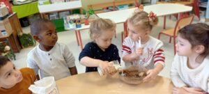 Nous avons planté des bulbes de fleurs pour décorer notre cour d’école.