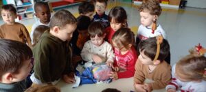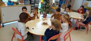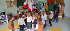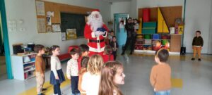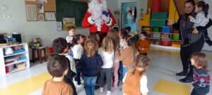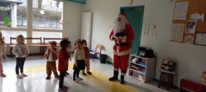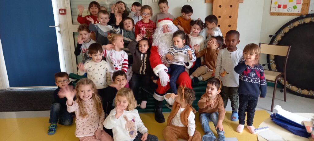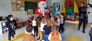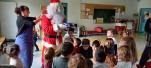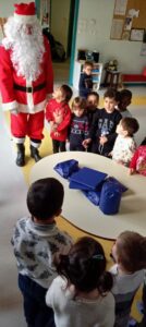 Le Père-Noël est venu nous voir à l’école, il a apporté des cadeaux pour la classe.